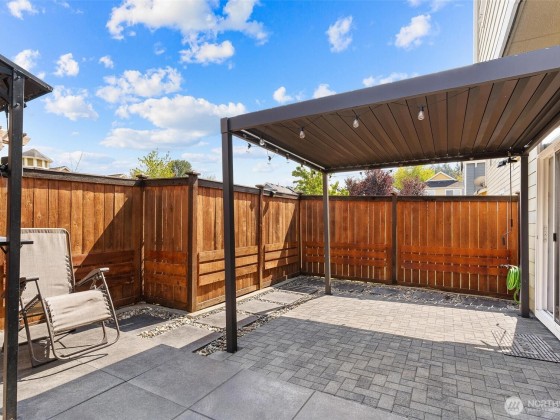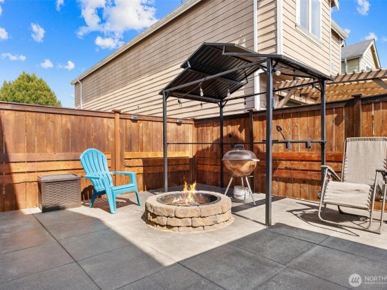 Welcome to Your Serene Retreat in The Village Community Nestled in the gated Village community with a playground,basketball court, and community center, this charming home blends comfort and style. Thoughtful upgrades include custom blinds, chic light fixtures, chandeliers, LED recessed lighting, fresh paint, a cozy fireplace, and luxury vinyl plank flooring. The main bath features a brand-new shower and California closet, plus a remodeled half bath. Outdoor living is a dream with a built-in gazebo, fire pit, and freshly stained fence, while the exterior will soon be painted by the HOA. All appliances, A/C units, and a new water heater are included, along with a spacious two-car garage. Conveniently close to I-5, 167, 512. Don’t miss out!