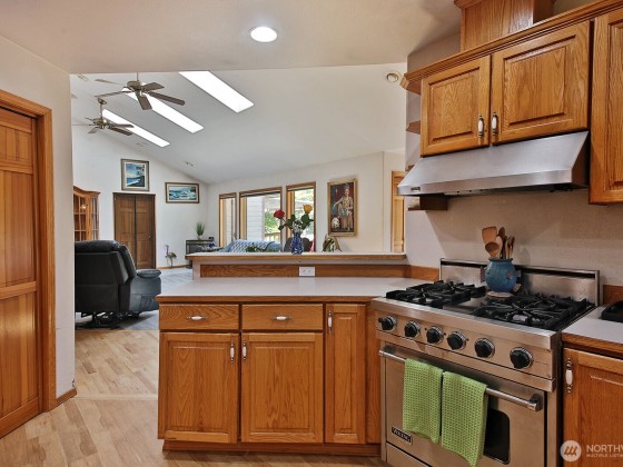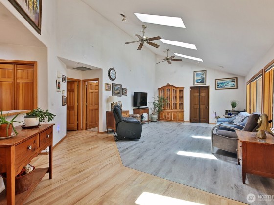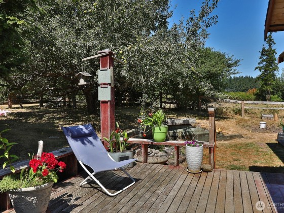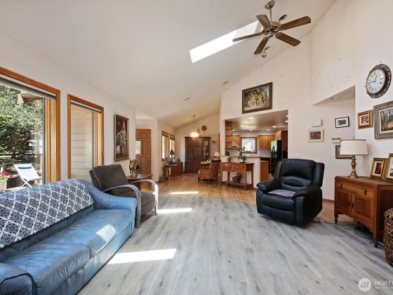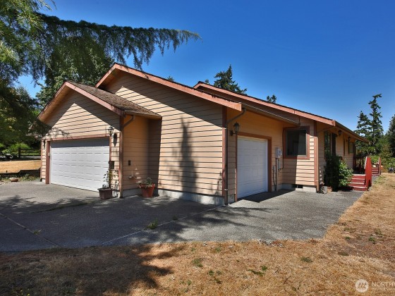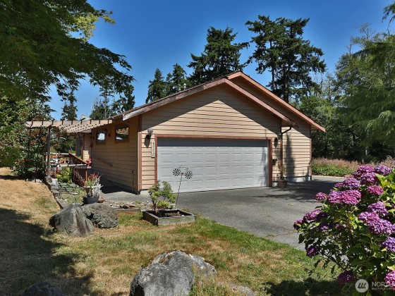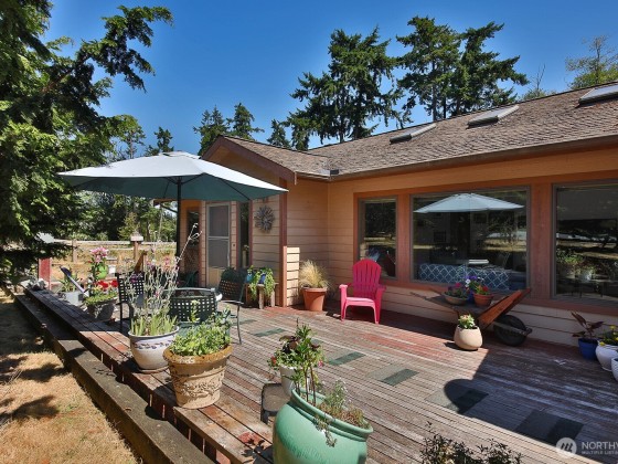 One-level home located in the Useless Bay Colony on a corner lot. Step inside to vaulted ceilings, skylights, and picture windows. An inviting open floor plan with a large kitchen, Viking stove, large pantry, and ample cabinets. The primary offers a 3/4 bathroom, while the den/additional room has a full bath. A large deck for enjoying BBQs or just unwinding from the day. The two-car garage features an extra side door, perfect for storing a golf cart or workshop. Leaf gutters are installed. The yard is open and sunny with apple, golden plum, and Asian pear trees. Community amenities include a pool, tennis courts, a gym, and private beach access.