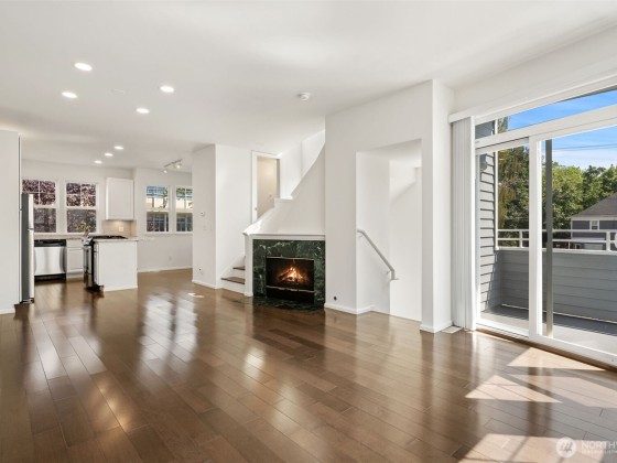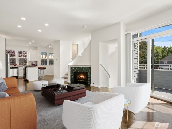 Now is Your Chance! $40k in Upgrades + $24k Price Drop! Vibrant Capitol Hill townhome is move-in ready, just steps to dining, shops, grocery, parks & weekend concerts. Recent upgrades include brand new carpet, paint, lighting, stainless appliances, furnace & washer/dryer! Entry floor offers a bedroom/office with wood floors, full bath & French doors to private gated patio. Enjoy an attached garage ready for EV charger. Main level features a sunlit great room w/gas fireplace, dining, eat-in kitchen, laundry & view deck for morning coffee or sunset cocktails. Upstairs, the primary suite shines with big windows, a walk-in closet, private deck w/sweeping Seattle/mountain views, + another bedroom & full bath. Why rent when you can own!?