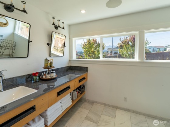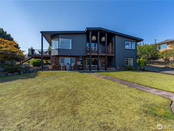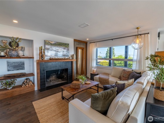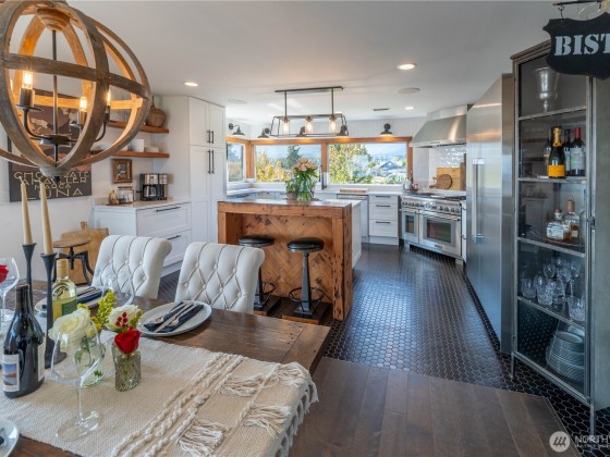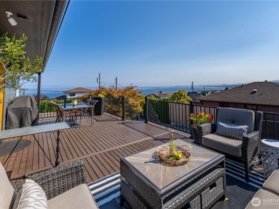 Exquisite Del Guzzi home with sweeping ocean, Strait & Olympic views, blending timeless craftsmanship with modern luxury. Fully reimagined in 2020 with new roof, systems & finishes, this residence showcases open spaces, hardwoods, reclaimed wood accents, fireplaces & Crestron smart lighting. A chef’s kitchen inspires with Thermador appliances, 48” dual-fuel range, 60” fridge/freezer, heated tile, custom cabinetry & quartz. The main-floor primary retreat features fireplace, walk-in closet & spa-worthy Carrara marble bath with oversized shower. Lower level adds 2 BRs, full bath, auxiliary kitchen & walk-out—perfect as a guest suite or Mother-in-Law apartment. EV charging, CCTV, and inviting exterior living.