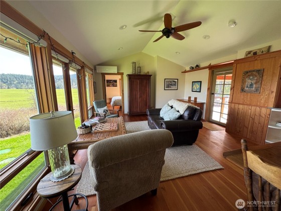 Nestled on 2 acres amid Orcas Island’s East Crow Valley pastoral beauty, this magical 2-bd/2-ba home blends log cabin w/new addition/appliances/modern amenities, deck/patio area. Local fir flooring, custom cabinetry, radiant heat, large windows showcasing wildlife-agricultural open space. Fenced garden w/young orchard/apple, plum trees and currants. Level terrain provides endless possibilities. Detached 30x30 building-a perfect space for art, hobbies or storage. New water system-well/power source/EV charger, water storage, rain catchment for irrigation. The property is situated between Orcas Ferry Landing and Eastsound. Quintessential Orcas Island character meets modern convenience in your private, tranquil retreat. Active Vacation rental.