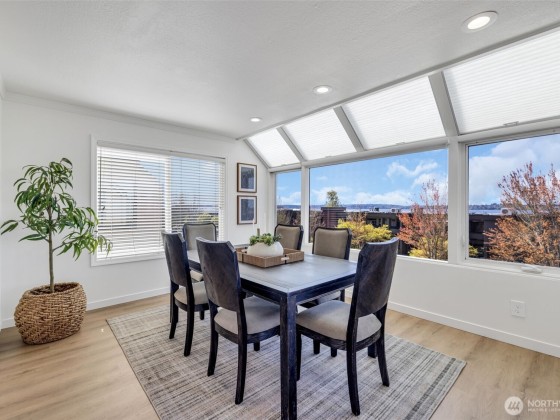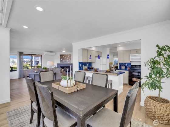 $32,000 CREDIT TO BUYER! Apply it toward a RATE Buy Down, price reduction, or future updates. Soak up sweeping lake & skyline views from this top-floor 3 bed/1.75 bath Kirkland condo w/AC. Perched in the heart of downtown, this light-filled home features floor-to-ceiling windows on three sides, skylights, and no common walls. The spacious living area with fireplace opens to a bright dining room and airy kitchen. Step onto the fabulous deck—perfect for warm evenings, sunset dinners, and fireworks over Lake WA. Rare 2-car garage with shop/storage offers flexible space for hobbies or a studio. Located in an intimate 8-unit complex just blocks from shops, restaurants, and even closer waterfront. Move in now and make the most of the season!