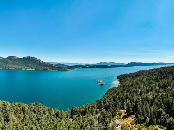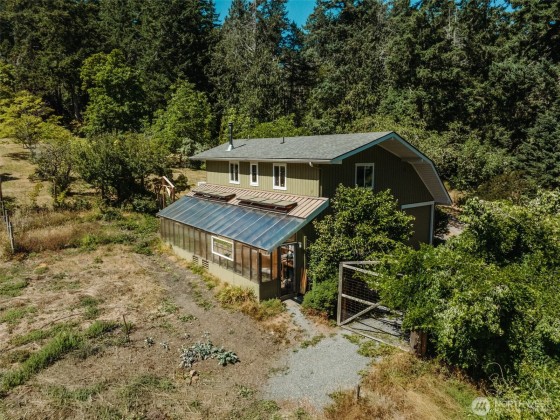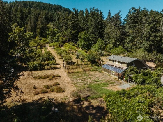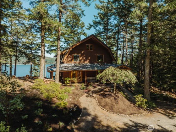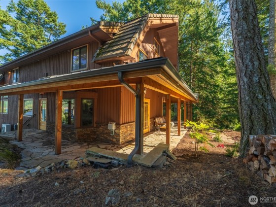 Secluded and serene, this stunning waterfront estate on 13+ private acres with ±800 ft of beachfront offers sweeping marine and mountain views. A fully remodeled 3BD/3BA luxury home features open-concept living, floor-to-ceiling windows, large stone fireplace, chef’s kitchen with Wolf appliances, Electrolux fridge, and granite countertops. Newly remodeled guest house with vacation rental permit, fruit and nut orchard, gardens, greenhouse, ponds, kennel, outbuildings including a large shop, chicken coop, high-speed fiber internet, and mooring buoy permit. Two parcels fully fenced with private well and newly lined 1100 gal. holding tank. This private PNW sanctuary offers space to rejuvenate, entertain, and cultivate your dream lifestyle farm.