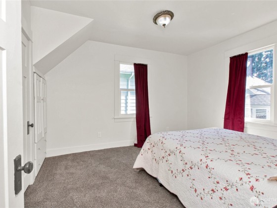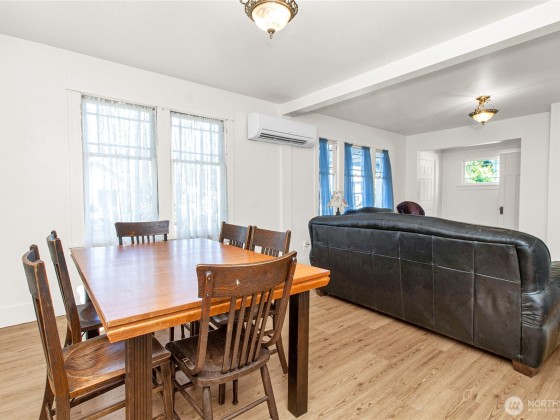 A 1922 home that is remodeled from top to bottom, it is an updated home! Plumbing, Electrical, New Roof, Flooring, HVAC, and MUCH MORE done to this home. Large front room and dining room for open concept living. TV included in Living area. Kitchen is updated and comes with newer appliances. Kitchen area leads to laundry room with pantry and door to backyard. Partial Mount Rainier View from kitchen window and full view from upstairs bedroom window. Bedroom downstairs with newer closets/windows and newer ADA bathroom. Stairs have been redone and leads to two spacious bedrooms with closets, lights come on when enter closets for convenience. Flooring new throughout home. Shed in backyard. Close schools, shopping and freeways. Motivated Seller!