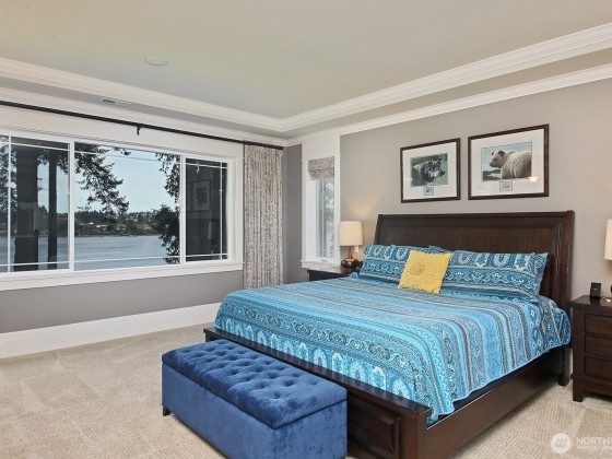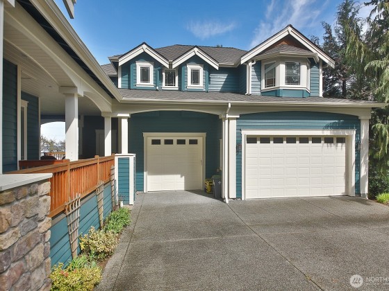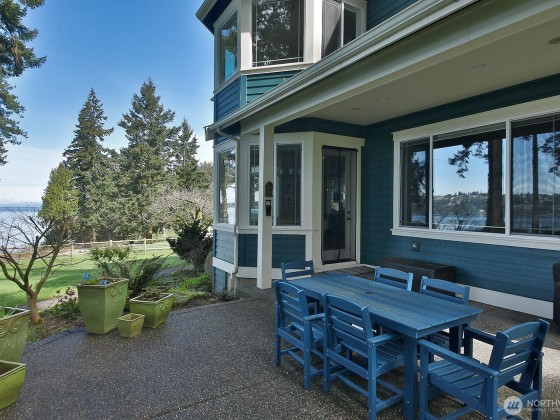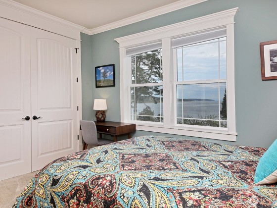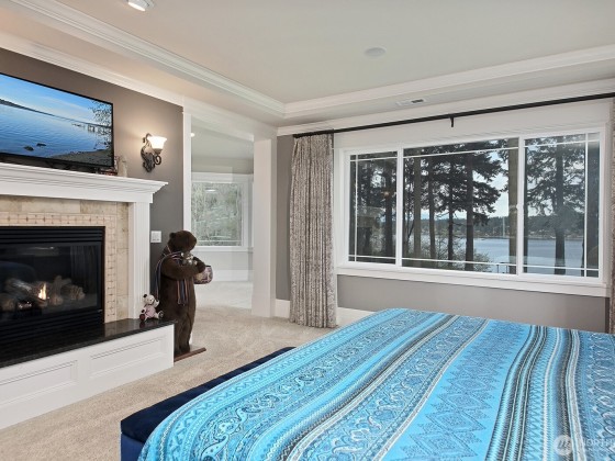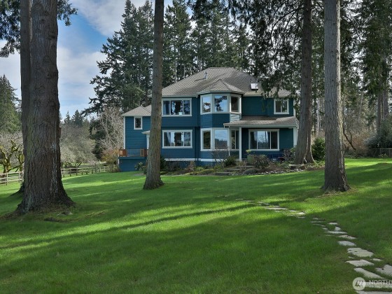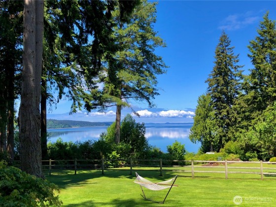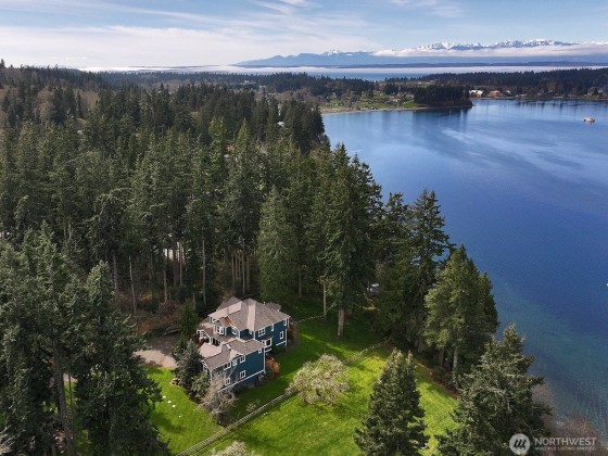 Perched above Holmes Harbor with sunset views across 160+/- ft of unobstructed waterfront is this 5-bedroom luxury home. Equipped with a private tram to a quiet beach where you can explore to your heart's content, launch your kayaks and set your crab pots. Each bed features an en-suite bath & if that's not enough, guests can enjoy a detached 1 bed apartment w/ full kitchen. Choose from a primary on the main or the expansive upper with sitting area & endless views. A large library provides room for work or enjoying a favorite read. Also a chef's kitchen w/ large pantry & wine cellar. Enjoy evenings on the covered porch w/ a outdoor fire & hot tub. Just minutes from the amenities of Freeland including grocery, dining, retail & business needs.