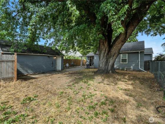 Spacious 4-bedroom, 1-bath home with multiple living spaces offering flexibility and comfort. Walk out the separate dining room and enjoy the outdoors with a covered patio and a fully fenced backyard—perfect for pets, play, gardening, or entertaining. Alley access leads to a detached garage and additional parking, adding convenience and plenty of storage space. A great home with room to grow!
