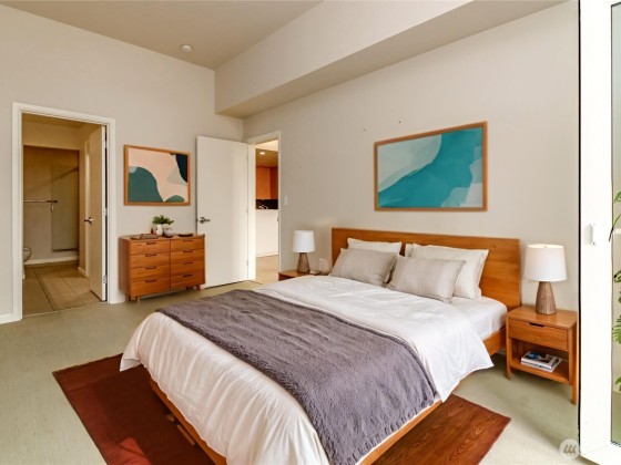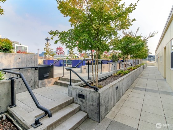 Experience modern luxury in this large top-floor unit, filled with natural light from floor-to-ceiling windows and skylight. Enjoy your private balcony with views, & just steps from the rooftop deck. Spacious kitchen with dining and breakfast bar seating. Bamboo flooring, granite countertops, gas range, and fireplace. Primary bath has double sinks & large walk-in closet. Plenty of storage! The den is flexible as a guest room or home office. Secure indoor-access building with covered garage parking. In the heart of Queen Anne, with easy access to freeways, grocery, and more. Well-connected to public transit. Close to Sculpture Park, waterfront walk to Pike Place or ballpark, and just blocks from Seattle Center and Space Needle! No rental cap
