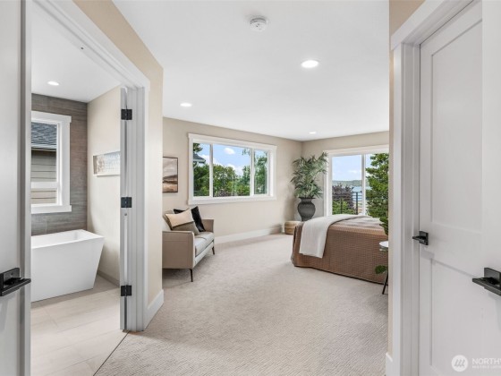Ahhh...life one block to the beach w/Sound views & 2 parks-incl pickleball+private boat launch! Add in the rarity of new construction in this boutique area of Lower Browns Point & you can just FEEL yourself exhale. Gorgeous, high end, thoughtful finishes & generous spaces are offered in this 2 story home, starting with wide plank oak flooring & 8 ft doors thruout main level. Incredible, open great room has floor to ceiling fpl, flanked by rich walnut; spacious dining w/room for 10-1; Chef's kitchen has Bertazzoni appl (incl 36" gas range), 10 ft island & covet-worthy pantry, wine/coffee bar w/wine refrig. Sumptuous primary suite has view deck & amazing sunsets. Huge, lush yard, fenced+sprinkler sys. Soft modern lines, beautiful workmanship.