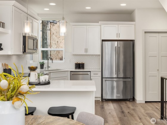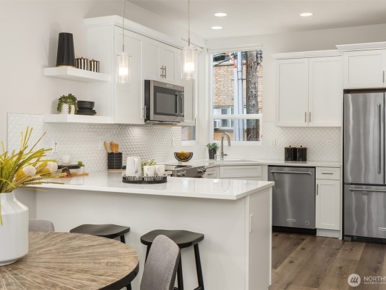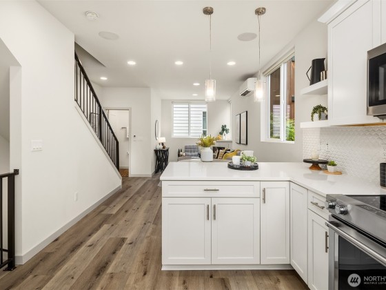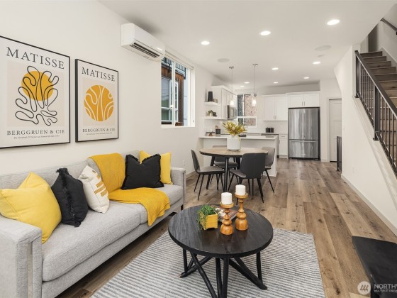 Bright, modern & effortlessly cool—this 3BR, 2.5BA 4-Star Built Green townhome blends sustainability with style in a prime location. Sunlight pours through oversized windows into open living spaces and a sleek bright kitchen with abundant storage and KitchenAid appliances- perfect for easy entertaining. The top-floor primary suite is a private retreat with a spa-like bath, custom closets, W/D & terrace. Two additional bedrooms flex for roommates, guests or work-from-home. Enjoy year-round comfort with energy-efficient mini splits, off-street parking & unbeatable walkability to all amenities, UW, transit, parks- all the best! Like-new 2020 construction, 4 Star built green, freshly painted & move-in ready. No HOA.