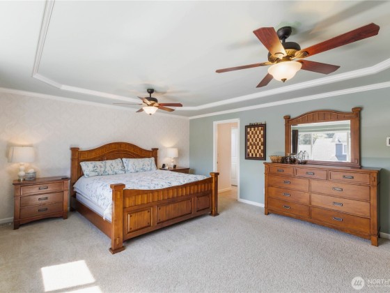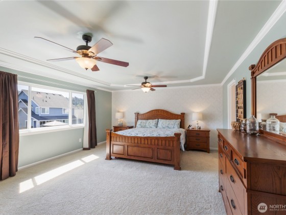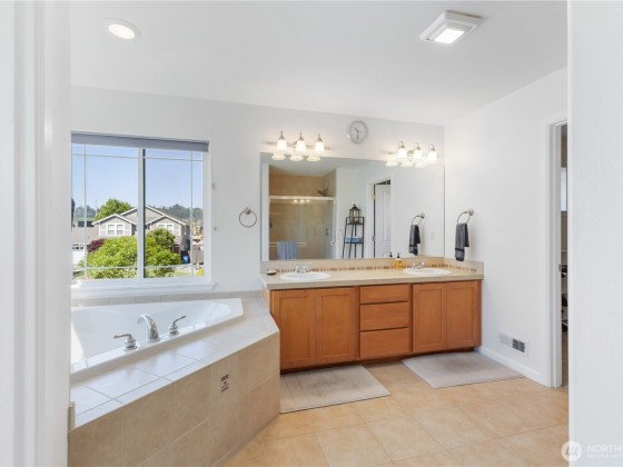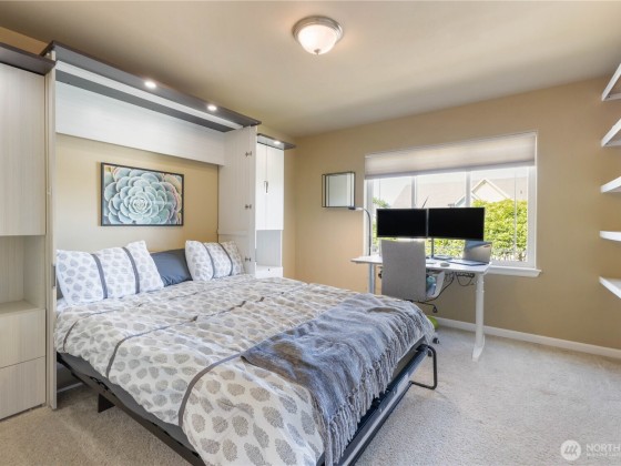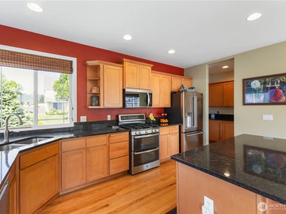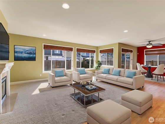 Beautiful 5BD/2.5BA, 3,384 sq ft home on a quiet, sidewalk-lined cul-de-sac! Open layout with French doors leading to a soaring entry, spacious great rm w/gas FP, dining w/wainscoting & coved ceiling, main floor office, and chef’s kitchen w/granite counters, island w/breakfast bar, stainless appliances, butler’s pantry & dining nook. Upstairs media rm w/screen & equipment or use as a 5th BD, Murphy bed in 4th BD, and a generous primary suite w/5PC bath & walk-in closet. Tandem 3-car garage w/workspace, generator-ready, fenced & landscaped yard w/hot tub. Heat pump for year-round comfort. Check out the photos with add info. With all this space there are endless possibilities! Multigenerational living, Adult Family Home or in home business!