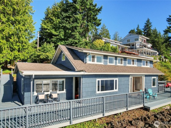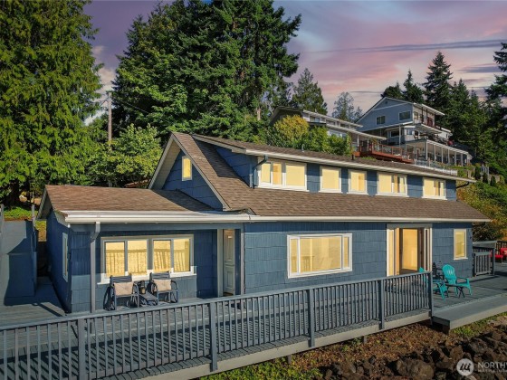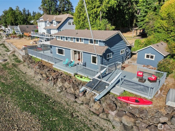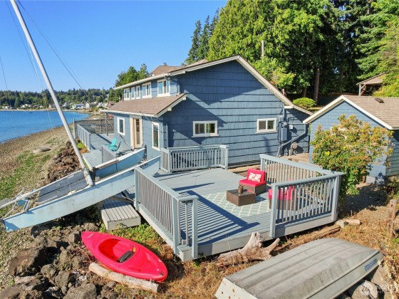 Along 115 feet of serene shoreline with a timeless, stone bulkhead, this 4 bedroom, 3 bath waterfront home offers front-row views of Mount Rainier, Blake Island, and the glittering Seattle skyline. Inside, 1920s charm blends seamlessly with modern updates, while an expansive deck invites sunrise coffees and sunset gatherings. The upper level features its own power meter, water, and sewer dump for effortless RV parking, and a three-stall carport with generous guest parking ensures everyone feels welcome. This is more than a home—it’s a lifestyle on the water’s edge. Just minutes from charming downtown Manchester, boat launch, and Seattle Ferries (Fauntleroy and fast ferry).