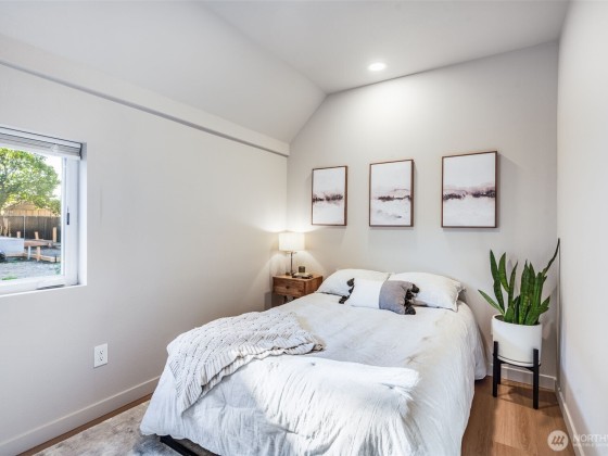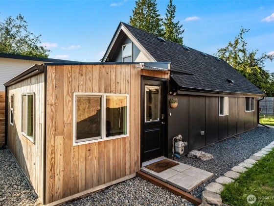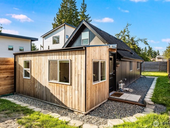 Welcome to this stunning remodeled rambler, blending modern style with cozy charm! This 1 bed, 1 bath home offers a spacious dining area, convenient laundry room, bedroom w/ vaulted ceilings & beautifully updated bathroom. The kitchen boasts stainless steel appliances, quartz countertops and opens to a vaulted-ceiling living room filled with ample natural light. Sliding doors lead to the fully fenced backyard—perfect for entertaining or relaxing. Large finished attic provides excellent storage. New roof, paint, siding & much more! Conveniently located w/ nearby shopping and quick freeway access. Move-in ready and full of thoughtful upgrades, this gem is waiting for you—come see it today!