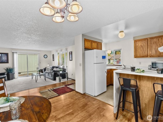 Affordable Living in a Great Location! Step into this adorable 2-bed/2-bath home w/EZ care laminate flooring, new carpet & a convenient kitchen w/eating bar. Nestled next to Rainier Vista Park, you’ll have recreational opportunities just outside your front door. Fully fenced low maintenance yard is modest in size & perfect for pets & busy lifestyles. Front landscaping is taken care of by the assoc. so you can enjoy a welcoming curb appeal without the extra work. You’ll love being minutes from golf, shopping, & eateries. Quick commute to JBLM. Best of all, this home is a wonderful first step into homeownership. With its manageable size, thoughtful layout & excellent location, it’s ready for your personal touches to make it truly your own.