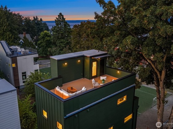Tucked away for added privacy, this new construction standalone home by renowned builder offers a perfect blend of contemporary design and neighborhood charm. Sleek interiors feature great finishes and open living spaces that flow seamlessly to oversized rooftop decks with views of Mount Rainier and Lake Washington. Enjoy evenings overlooking the city or hosting friends under the stars. A dedicated parking space makes life easy, while you remain steps from Madrona’s beloved dining, boutiques, parks, and the lake. With beautiful craftsmanship and an incredible location, this home captures the best of modern Seattle living.