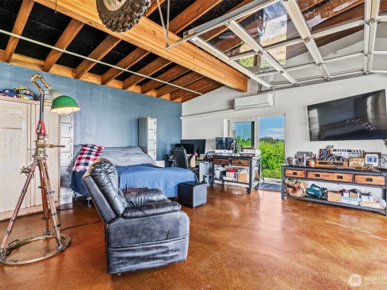Rare Deep River @ Oneida Rd awaits; you will not believe these phenomenal Columbia River & territorial views of Oregon Hills. Comes w/well-appointed custom industrial-inspired STUDIO home. Private, gated community is surrounded by privately owned greenbelt. Deer, Elk & other wildlife frequently visit. Enjoy the EZ care, stained concrete floors, ductless HVAC, half-vault slant ceilings w/transom windows & two 10' roll up glass doors for true indoor/outdoor living. Large bath houses W/D & no-step shower. Expansive covered Trex deck, 12x20 shed w/roll up & man door, 12x24 metal covered parking, prepped for future addition of living space - add a bedroom with ease! RV spot w/propane & 50-amp power (charge your EV!) NOT a DRIVE BY - gated!