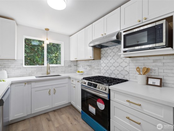$12,000 seller credit offered for an interest rate buy down!! A turnkey charmer on a private cul-de-sac! This home is filled w/ natural light & modern charm; features 4 bedrooms: 3 on the main level & 1 on the lower level (home office or multigenerational living). The primary is a peaceful retreat w/ a beautiful en suite, dual vanity, walk-in closet, & a peekaboo view of the Sound. Enjoy fresh interior & exterior paint, new windows & new LVP flooring & carpet throughout. The fully remodeled kitchen w/ brand new appliances flow into the dining area and main living space, creating a bright & open concept perfect for everyday living and entertaining. Downstairs, the expansive lower level offers incredible flexibility. Walk into instant equity!