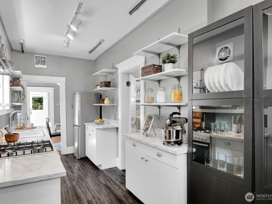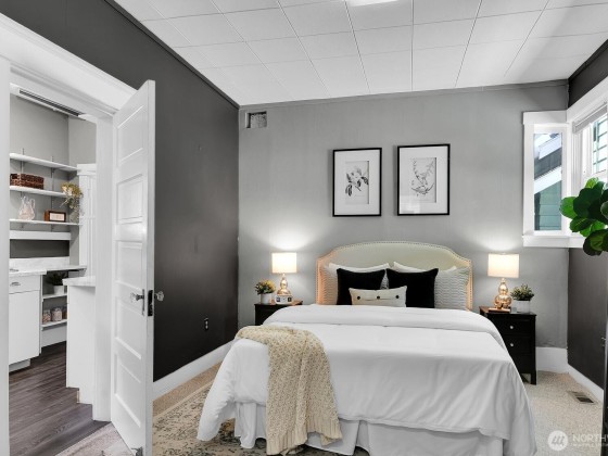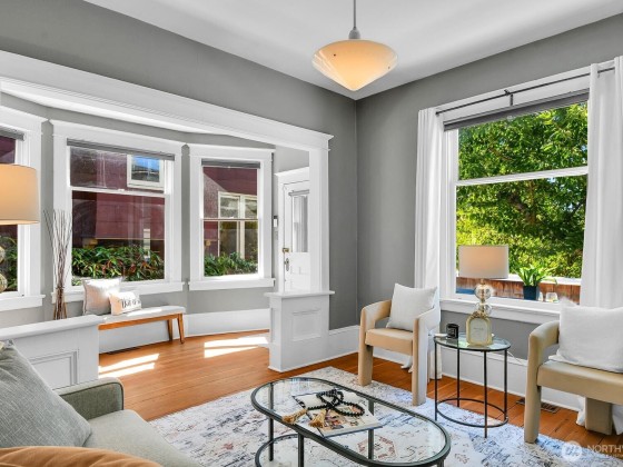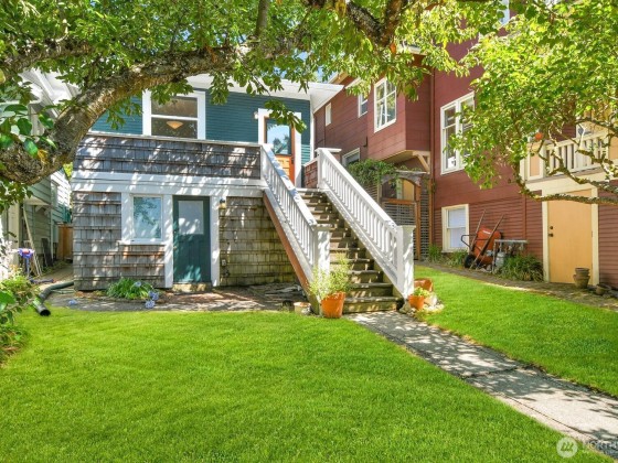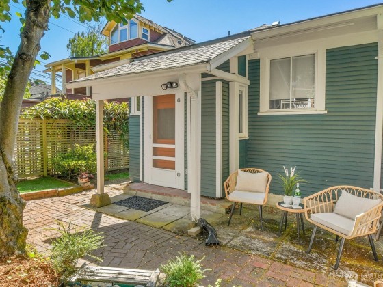 Charm abounds in this sweet Queen Anne home. The sunny front porch welcomes you in, the perfect place for your morning coffee. Tall ceilings and expansive windows greet you as you enter and let in so much light. Beautiful fir floors and many original period details flow through the elegant entry, living, and dining rooms. Spacious kitchen has no shortage of storage and prep space, there's also a breakfast nook and a door to the back brick patio. Rounding out the main floor is a generous primary bedroom with bathroom access, a second bedroom, and full bath with loads of storage. Adorable backyard leads to the alley. Downstairs has a finished office as well as laundry and a large open area. Fabulous value in a top Seattle neighborhood!