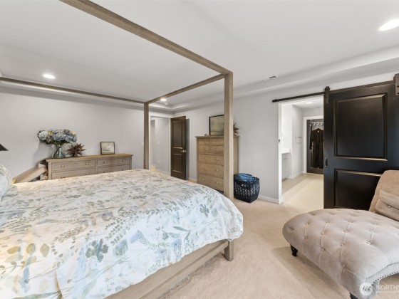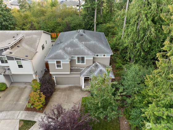 Beautiful home tucked at the end of a private cul-de-sac, surrounded by greenbelt on 3 sides for unmatched privacy! Offering 4 beds/2 baths up, & main floor 5th bedroom W/adjacent ¾ bath for possible multi-gen living. Chef's kitchen w/large island, huge sink, wall ovens, WI pantry, & 2023 KitchenAid appliances, opening seamlessly to the great room. The covered patio has gas FP & gas hook up for grill. Perfect for year-round entertaining. Upstairs, find a spacious loft, laundry (Ft. LG high-capacity machines w/pedestals), 3 guest rooms + expansive Owner’s Suite W/peek-a-boo mountain view, spa-like 5-piece bath, & WIC. Newer carpet, smart garage opener, outdoor fountain, & dog run add to the appeal. A short walk to Tehaleh Heights Elementary!