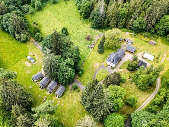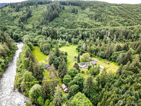 Owner financing with flexible terms available! Fully rebuilt, historic home on 40 acres of forest and pastureland with approx. 1200 ft of Sol Duc riverfront and 2000 ft along Beaver Creek. The 4000 sf residence highlights locally sourced old growth fir doors, trim and cabinets, plus a custom fireplace built from local river rock. Grounds include 100-year-old trees, a barn, greenhouse, productive garden, multiple outbuildings, and a landmark bridge. Four cabins operate as a top-rated lodging business, with the property well suited for weddings, events and private retreats. Generous WRC zoning allows for a long list of permitted uses. Simply an exceptional opportunity to own an exceptional property.