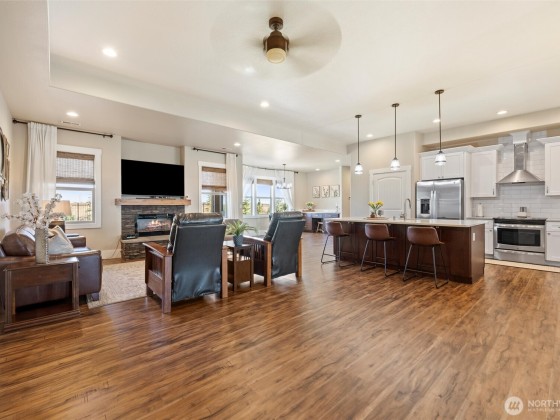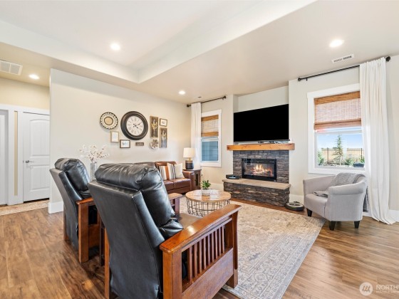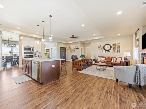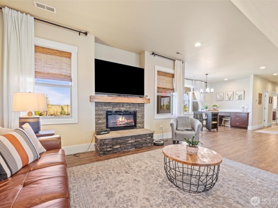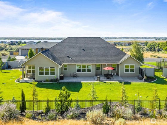 Enjoy breathtaking lake views from this spacious 3091sq ft home on almost 1/2 acre, thoughtfully designed for comfort & style. Featuring an open & inviting layout, this property offers multiple living areas including a bonus room;perfect for a home office or guest retreat. Beautiful countertops, custom bathroom tile, jetted tub, & spectacular finishes are just a few characteristics. Large windows bring in natural light & frame lake views. The eye-catching landscaping creates a serene outdoor setting great for enjoying sunsets or entertaining. With generous square footage, flexible living spaces, & picture perfect setting, this property offers a rare opportunity to own a home that combines elegance, functionality, & stunning surroundings.