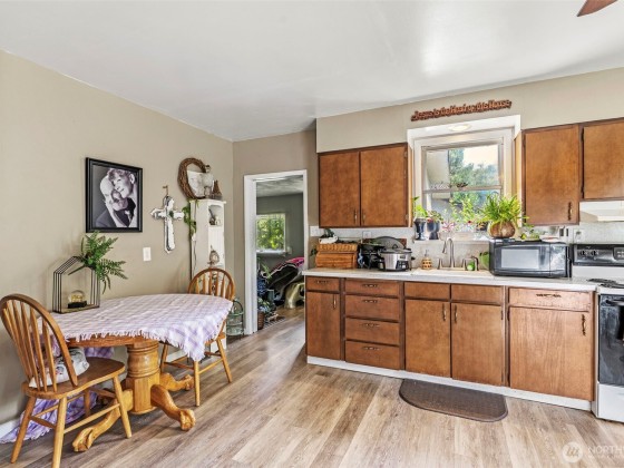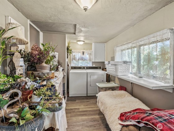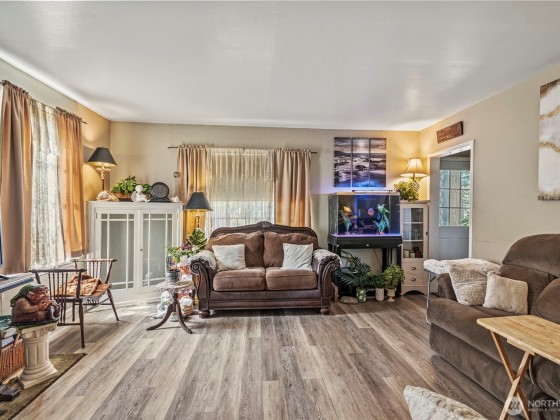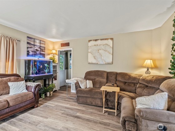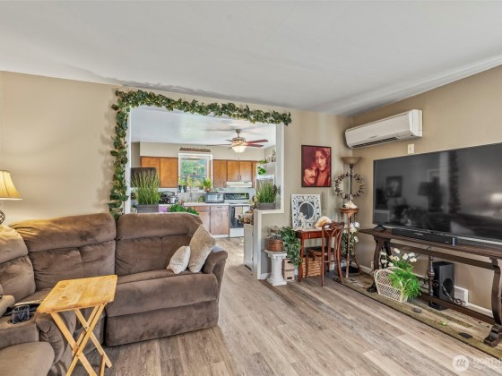 Welcome to this beautifully updated home in the serene Ryderwood 55+ community, where modern comfort meets cozy charm. This inviting residence boasts two spacious bedrooms with generous walk-in closets, including a master with an attached half bath for added convenience. The expansive kitchen and dining area is perfect for entertaining, while the utility room offers ample storage space. Completely renovated in 2018 with a new roof, flooring, paint, and fixtures, this home also features an efficient ductless heat pump in the living room for year-round comfort. Outside, enjoy a private fenced backyard and a large garage with dedicated shop space for hobbies or storage. Don’t miss this move-in-ready gem in a vibrant community!