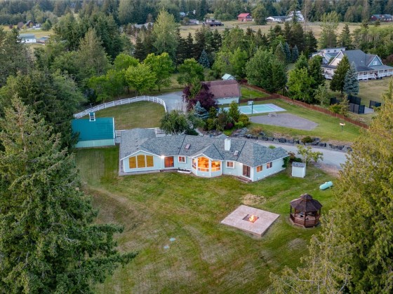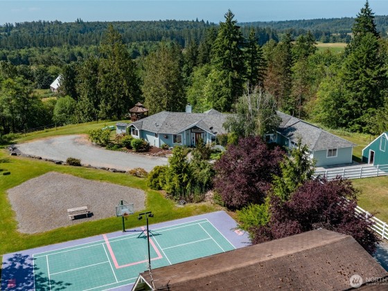 Here is the stunning & expansive Equestrian property you’ve been waiting for. Stable w/3 stalls & 2 outdoor arenas. 2,777 sq foot custom built one story home was constructed w/thoughtful attention to detail every step of the way+ample storage. Hardwood floors engineered to be silent. 3 bedrooms + office, spacious great room w/oversized windows overlooking beautiful views & large media room. Primary bedroom w/views, a walk-in closet, an en-suite double vanity, soaking jetted tub, shower & private water closet. Large media room, shop w/loft above 1 bedroom apartment, chicken coop+fenced garden area, sports court, gazebo, stamped concrete custom fire pit. This is one of those “must sees” to view everything this spectacular home has to offer.
