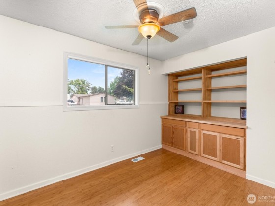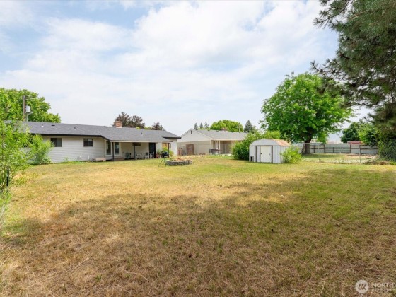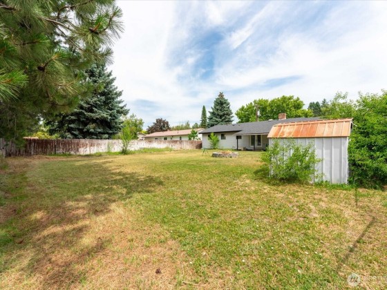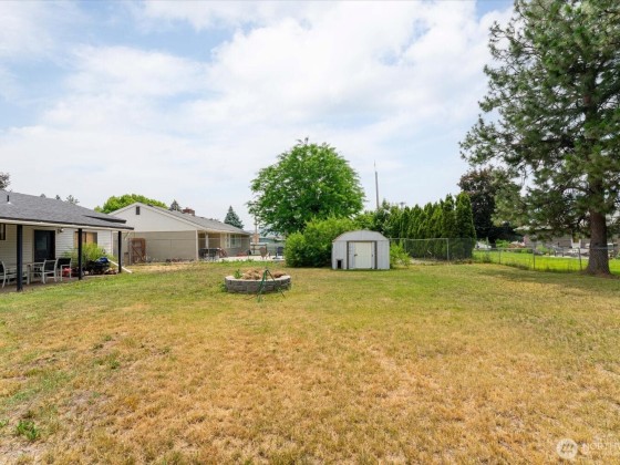 Charming 3-bed, 2-bath rambler offering ideal main level living. The living room features a wood-burning fireplace & flows into the dining area off the well equipped kitchen complete w/stainless appliances & granite composite sink overlooking the backyard & covered patio. Bamboo flooring runs throughout, w/tile in the baths. All bedrooms have ceiling fans & spacious closets, and the primary bdrm has a private ¾ bath. The 3rd bdrm w/ built-ins makes a perfect office or nursery. Enjoy a dedicated laundry room w/ utility sink & cabinetry. Outside features include mature landscaping, a sprinklered front yard & garden area, covered patio, firepit, storage shed, & oversized 1-car garage w/workspace & man door to backyard. Forced air & central a/c