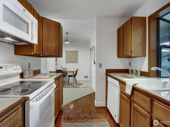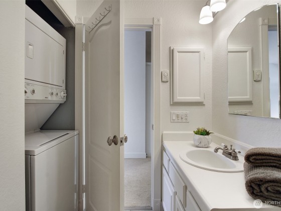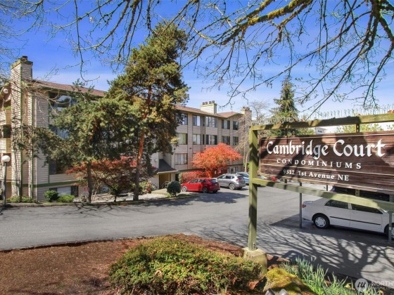 Imagine owning a top-floor condo with vaulted ceilings just steps to the Northgate Light Rail, North Seattle College, Kraken Community Iceplex, restaurants, theater and shopping. Move-in ready and recently updated with fresh paint and carpet, this 1-bedroom condo lives large with a Murphy Bed for additional guests, in-unit laundry, and plenty of storage. Perfect for downsizers, first time buyers or investor. Secure building with elevator and dedicated off-street parking. Add a cozy wood-burning fireplace, and south facing deck and windows that drench the unit in light – don’t wait!