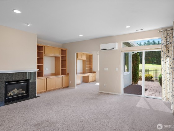 This welcoming Woodlands floorplan, offers exceptional privacy and abundance of natural light. The kitchen greets you with sleek quartz countertops and a cozy nook, perfect for casual dining. The living room and den are enhanced by beautiful built-ins, adding warmth and character. Enjoy year round comfort with efficient ductless air throughout. Step outside to a stunning patio overlooking the golf course and a tranquil water feature with an additional side sitting area. Located in the premier 55+ community of Jubilee, you’ll enjoy endless amenities, social opportunities, and access to a private community beach. Live the lifestyle you deserve!