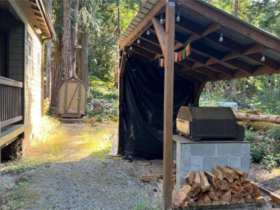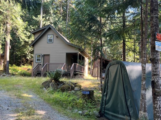 Escape to the tranquility of Cascade River Park, a gated community offering river access, BBQ, and picnic areas. Enjoy a scenic drive over two picturesque bridges crossing the Cascade River before arriving at this peaceful cabin retreat—ideal for weekend use or short-term rental potential. The well-maintained interior features a kitchen with stainless steel counters, gas stove, and counter seating. A cozy living area includes slate flooring, a freestanding wood stove, and propane heater. Fresh interior paint and wood trim throughout add warmth and charm. The bathroom includes a full-size tiled shower. Outside, enjoy storage sheds, a covered space with a pizza oven, and an open backyard firepit perfect for relaxing evenings.