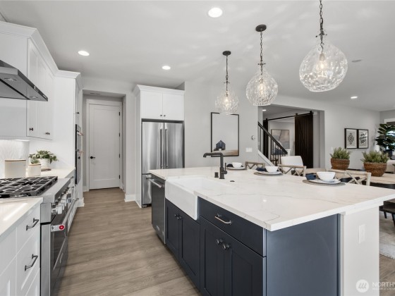 Best of both worlds! Brand new home w/designer features & a quick move-in opportunity! Entertain with pleasure in the spacious great room, kitchen, informal dining & covered outdoor patio. Main floor also features guest rm + office. Stunning kitchen with large island, quartz counters, beautiful white cabinets, walk-in pantry, mudroom w/ bench. Upstairs, your private retreat awaits in the elegant primary suite with two walk-in closets, soaking tub, dual vanities, and separate shower w/ bench seat. Check out our smart home pkg and ask about our Buyer Bonus with Tri Pointe Connect! Pictures are of a Model home. Reg Policy #4675-Buyer Broker must accompany and personally register buyer at first visit, or no BBC will be paid.