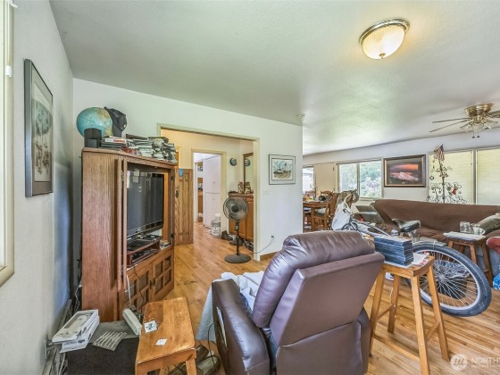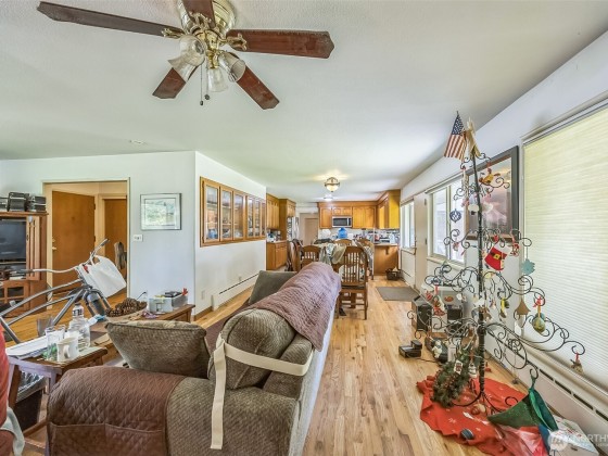 This custom-built rambler, features a spacious recreation room above the garage, perfect for flexible use. Enjoy the charm of hardwood floors throughout and the open floor plan allows easy movement through the home. The living room offers a cozy ambiance with a gas fireplace insert and lots of natural light. The kitchen includes stainless steel appliances while the dinning room has great built-ins for extra storage. Additional features include an irrigation well, a small greenhouse, and a fully fenced yard.