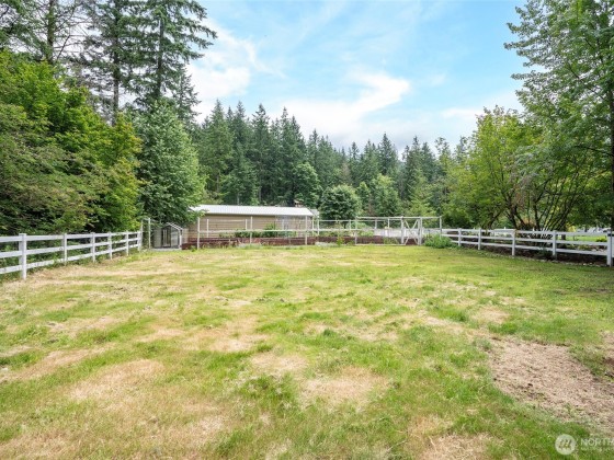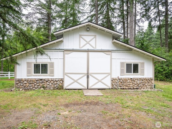 HUGE Price Improvement! This serene wooded retreat on 2 acres, minutes from downtown North Bend and I-90. This beautifully landscaped property features soaring cathedral ceilings, hardwood floors, wainscoting, and 6-panel doors. Kitchen offers maple cabinets, Gas cooktop, and French doors to outdoor living. The primary suite includes a spa-like experience with jacuzzi tub. Equestrian-ready a 36' x 32' multi-use outbuilding, 2 corrals, chicken coop, garden space, and 3-car garage. Peaceful privacy with easy access to trails, skiing, dining, and Twin Peaks landmarks. A unique blend of space, nature, and convenience! With its equestrian-ready infrastructure, multi-use outbuilding, and fully landscaped acreage, this property is a versatile Gem.