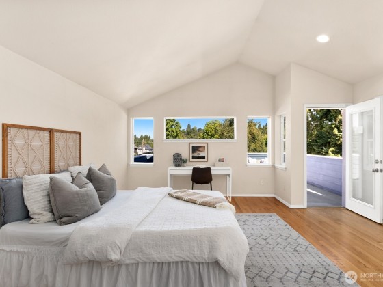 Imagine beginning your day in a sunlit kitchen near the private deck, the perfect spot for morning coffee or weekend brunch. Evenings invite leisurely strolls to acclaimed cafés, boutiques, and parks, while weekends bring gatherings in an open living and dining space designed for effortless entertaining. Thoughtful updates and timeless details give this home a modern yet welcoming character. Upstairs, the entire top floor is devoted to the primary suite, offering a serene sanctuary with soaring vaulted ceilings, a spacious walk-in closet, and a private deck that captures the quiet charm of the neighborhood. Two additional bedrooms provide versatility for guests, a home office, ADU and more. Attached garage and abundant off-street parking.