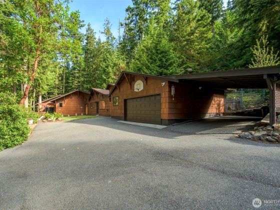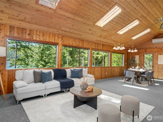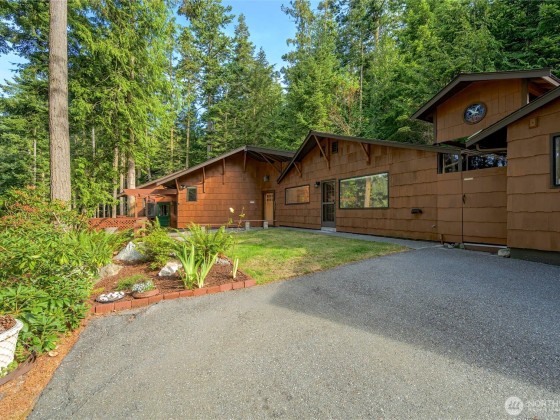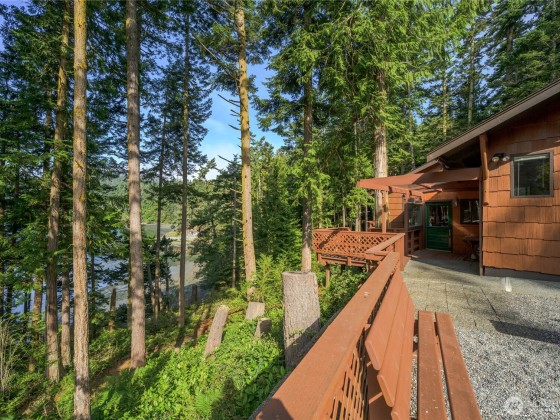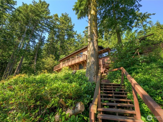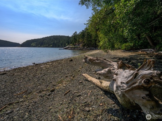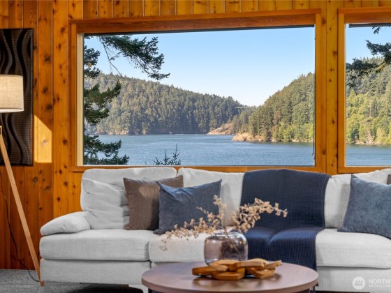 Experience the essence of Pacific Northwest waterfront living on the south side of Fidalgo Island. Tucked amid mature evergreens, this 3 parcel, 2 home estate is nestled on 1.9 private acres. The main residence enjoys an expansive living room, dining room and kitchen space; accented by rustic open-beams, vaulted ceilings with skylights, warm T&G knotty pine finishes along with abundant windows framing the lush forest, turquoise sea, vivid sunsets, and Deception Pass Bridge. A gently sloping path leads down to a private beach with 160' of waterfront and owned tidelands, perfect for mooring a boat, launching kayaks, or strolls on the beach. The custom 1BD/1BA cottage awards a functional space for guests or a property manager.