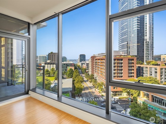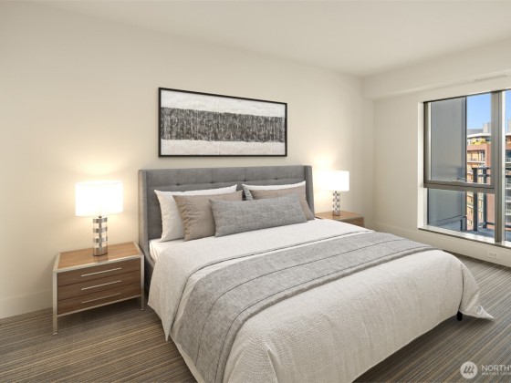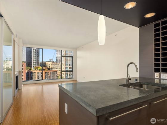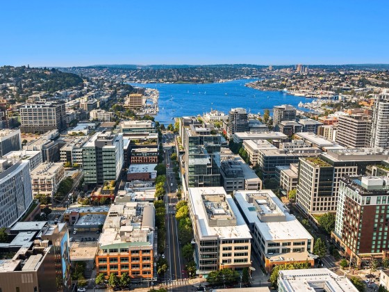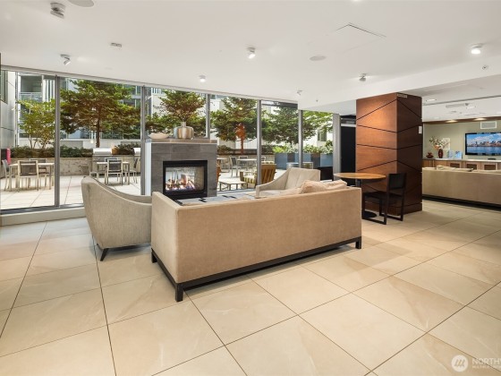 Sophisticated SLU Living at ENSO! Timeless 770 sqft of thoughtfully designed living space w/iconic city VIEWS stretching from Westlake to Lake Union. A seamless open layout showcases soaring ceilings, private balcony, a formal entry, & laundry room. The oversized BD includes a walk-in closet & comfortably accommodates a king bed w/space for seating or home office. Highlights incl European cabinetry, stone counters, prem appl w/gas range, hardwood flooring, custom built-ins, designer carpet, & a dual-sided gas fireplace. The spa-inspired BA is finished w/ a floating vanity, walk-in shower, & generous storage. Building offers 24-hour concierge, fitness, lounge & media room, outdoor terrace w/BBQs & fireplace, & guest suite. 1 PRKG/1 STRG incl