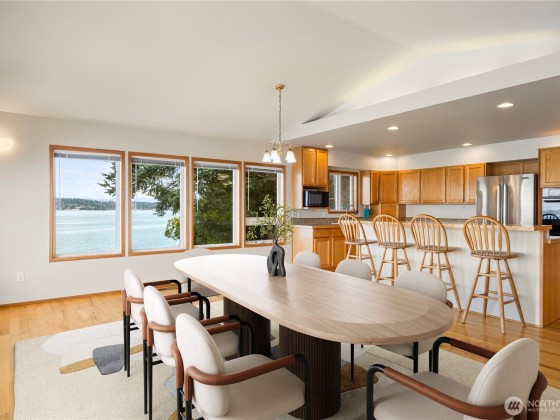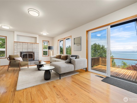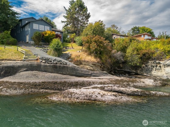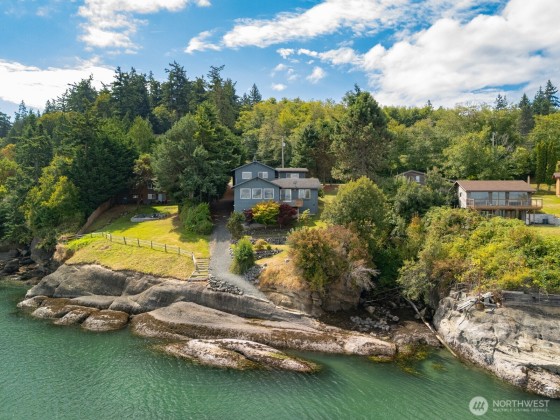 Experience PNW living at its finest in this stunning custom-built waterfront home! Enjoy the private 76' of accessible saltwater shoreline with Cascade and Canadian coastal views from every room. The sunlit open-concept layout features gleaming hardwoods, a chef’s kitchen with double range, and an island cooktop with all the views...making it ideal for entertaining. The functional floor plan design offers 2 bedrooms with private sinks and a Jack & Jill bath on the main floor, plus a private primary suite with ocean vistas from the upper floor with a full bath, walk-through closet, a workout room or studio, and a detached, secluded office, completing this rare gem of a home. There is also a 16 x 28 shop with a pit & potential mooring buoy.