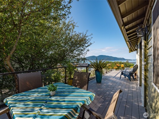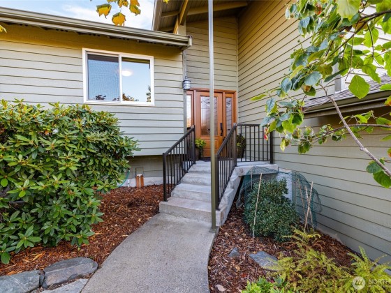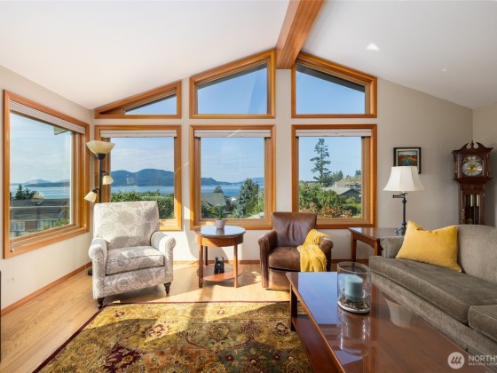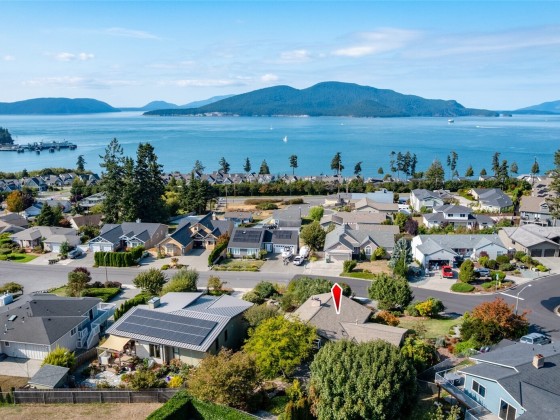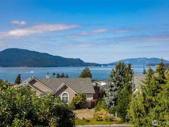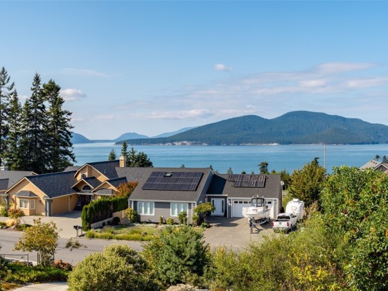 Spectacular water & island views set the stage for this inviting 4BR home, where the ultimate coastal lifestyle awaits. Watch ferries, boats & even whales from your living room! Vaulted ceilings & walls of windows frame the views, while a refreshed kitchen with granite, stainless appliances & quality cabinetry shines. Updated baths, cozy family room & thoughtful details throughout. Step outside to a spacious view deck, private patio vignette & lush landscaping. Just a short stroll to the beach, park & waterfront trails. Fresh exterior paint, EV charging, RV parking & HOA amenities including pickleball & sports courts complete this perfect Pacific Northwest retreat.