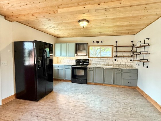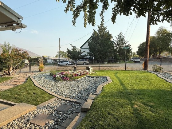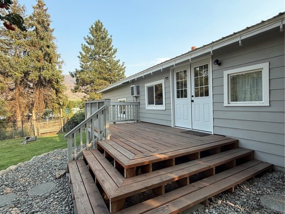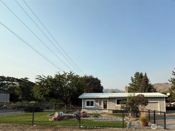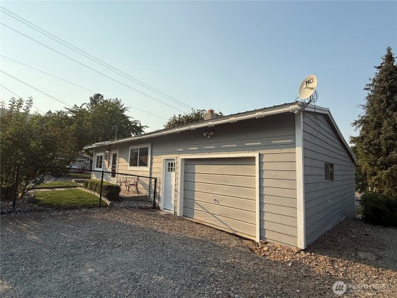 RIVERSIDE - Oversized corner lot w/diligently kept front & back yard! 920sqft 2 bedroom/1 bath house with attached 400sqft oversized one car garage w/ample storage space. Home features open living room, updated kitchen to include shelving, cupboards, countertops, with custom large sink and subway tiled backsplash - all appliances stay, knotty pine ceilings, two bedrooms, and three-quarter tiled bathroom. Brand new flooring. Utility room with washer/dryer. Fully fenced yard with a back deck. Storage shed. Irrigation. Septic. City of Riverside domestic water. Close proximity to Omak - less than 5 minutes - includes grocery stores, retail stores, gas stations, hardware suppliers, restaurants, and so much more. $230,000 MLS-2432620/H-3714