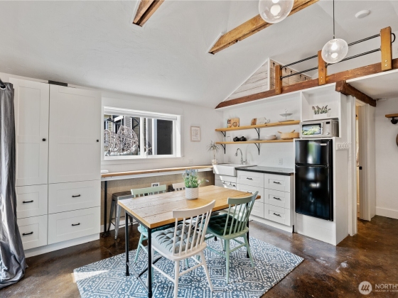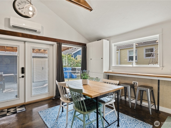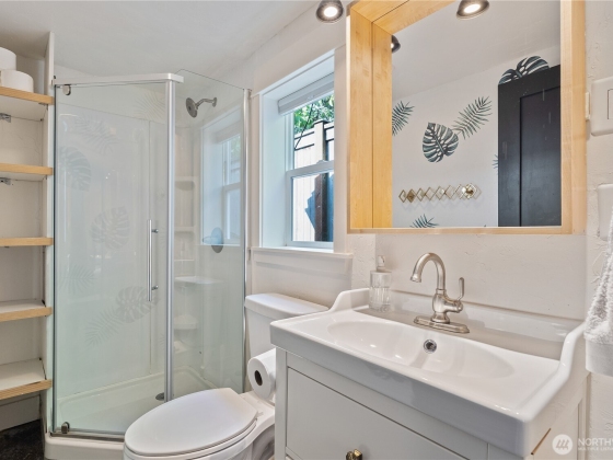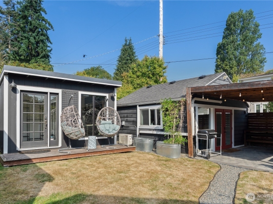 One of the most unique and enticing layouts you’ll find in Seattle, this charming Greenwood home is an absolutely must-see. Fully screened south-facing front porch allows you to enjoy outdoor/indoor comfort all year long. Newly renovated bath with high-end finishes, complete plumbing renovations (interior, exterior, drains). New double-paned windows and exterior doors, HVAC for simultaneous A/C + heating and reduced utilities bills. Nonconforming detached studio (360sqft) is also equipped with A/C, kitchenette, ¾ bath. Host guests or condominiumize for future investment. A third detached flex space perfect as an office, workout room or extra storage. Walkable to dining, parks, and bus/lightrail, this home truly has it all!