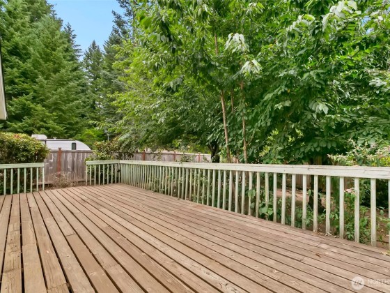 Peaceful Living on Over an Acre in Belfair! This charming 2-bedroom, 2-bath home sits on just over an acre and offers the perfect blend of comfort, space, and privacy. The property features a fully fenced yard, RV parking, an extended driveway, and a detached 2-car garage. A spacious wraparound deck sets the stage for outdoor entertaining or peaceful evenings under the stars. Step inside to an open-concept floor plan filled with natural light, hardwood floors, and a large primary suite complete with a full bath and ample closet space.