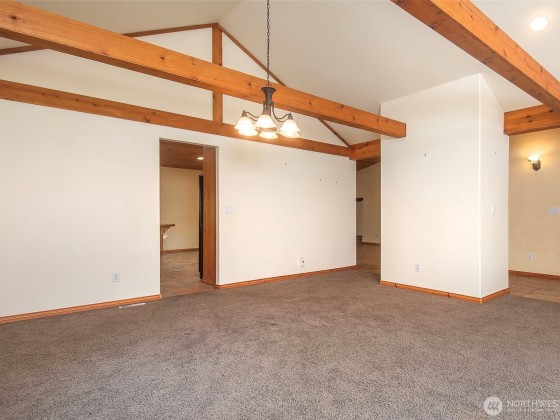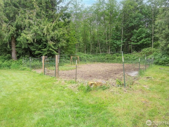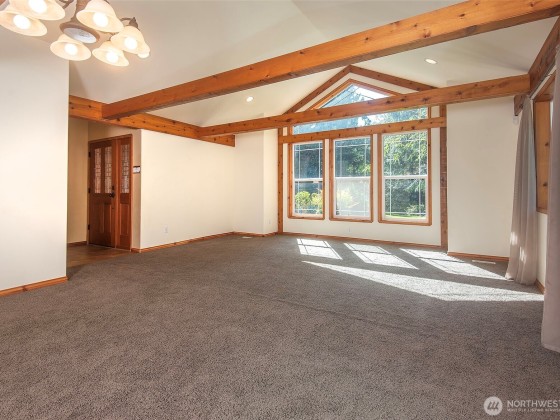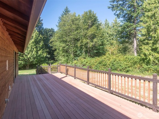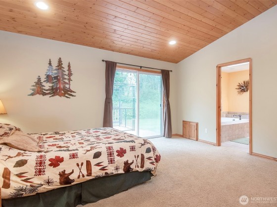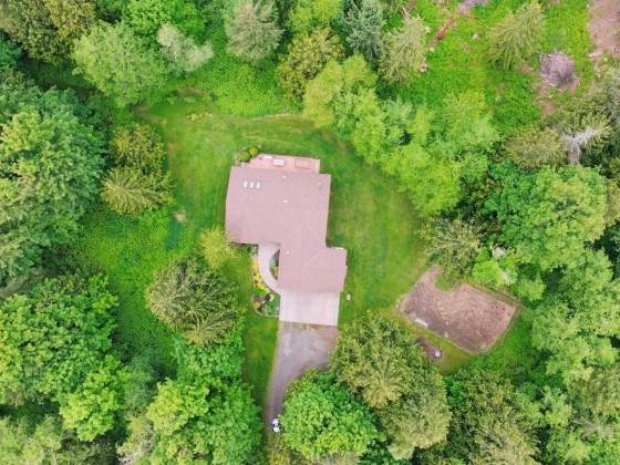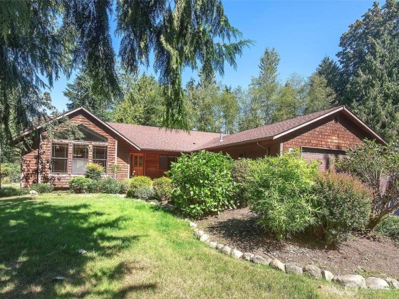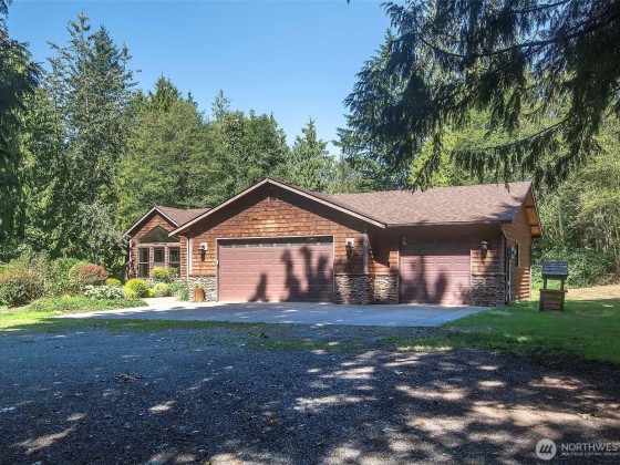 Nestled on 5 secluded acres, yet still offers an easy commute & quick access to nearby island getaways. Peace of mind with a newer roof, gated driveway, & wired for generator. Privacy as this is the last home on 58th. You are greeted by open beams, vaulted pine ceilings & millwork. Walk into the light filled great room and enjoy the crackle of a wood burning fireplace. The island kitchen, features double ovens, & a walk-in pantry. Vaulted ceilings continues into the primary suite, which offers a luxurious 5-piece bath with tile, a jetted tub, and walk-in closet. The private back yard is integrated into the living area w/ access from the great room & primary suite. A three car attached garage, designated garden space & No HOA.