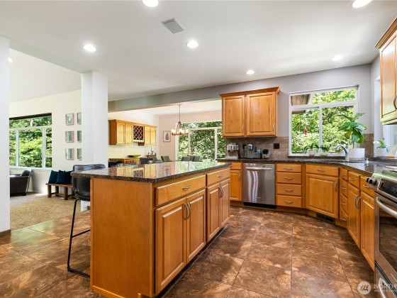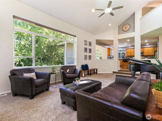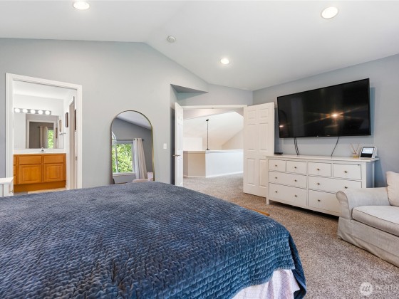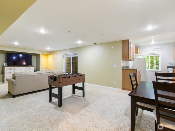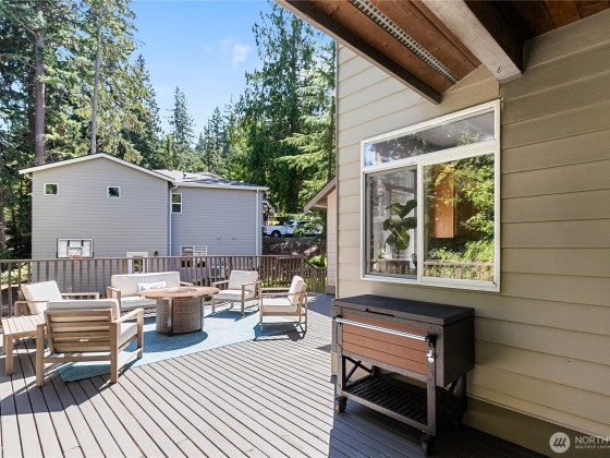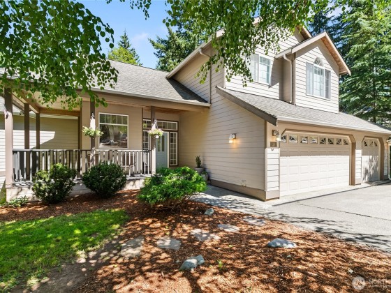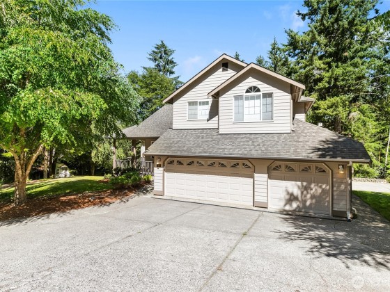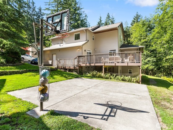 Spacious 5 bed, 4 bath Sudden Valley custom home on a rare sunny and flat 12,053 sq ft double lot with usable yard! 3,562 sq ft of living space, this home features vaulted ceilings, a large sunny deck, sport court, and 3-car garage and a welcoming covered front patio. The main level offers a bright kitchen with quartz counters and stainless appliances, large dining and living rooms, large laundry room, and a bedroom/office. 3 bedrooms upstairs including a grand primary suite with walk-in closet. Finished basement includes bedroom, full bath, kitchen, and living area—ideal MIL suite or ADU. Enjoy community amenities: golf, pool, beaches, sport courts, dog park, trails, mountain biking, and Lake Whatcom access. Walking distance to kids park.