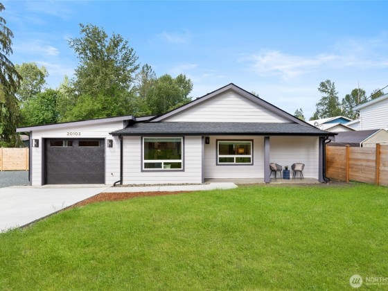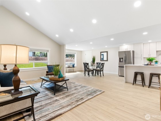 Step into style and comfort with this beautifully remodeled rambler located in the sought-after Northshore School District. Featuring 3 spacious bedrooms and 1.75 elegantly updated baths, this home showcases soaring vaulted ceilings and an open-concept layout. Enjoy cooking in a modern kitchen with striking waterfall countertops and stainless steel appliances. The fully fenced backyard offers privacy and space to relax or entertain, while the extra-large garage provides plenty of room for storage or hobbies. Sitting on a flat lot, this turn-key property blends thoughtful design and everyday functionality.