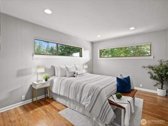// MOTIVATED SELLER // LOCATION //Charming mid-century home on a PRIVATE and fully fenced lot. EZ I-5 access & walkable Light Rail stations on 147th St & and soon 130th St. Enjoy the deck, covered back patio, & lower level firepit area amongst mature trees. Updated bathrooms on both levels. Enormous walk in closet & screened skylight in primary bedroom. Butcher block kitchen countertops & gas range. Workshop space in basement. Wired for EV charging. Nearby Highly Rated Schools, Jackson Park Golf Course, Public access to Haller Lake, Northacres Park & hiking trails, playground, water park & dog park. Close to Amazon Fresh, Costco, & Town and Country. Experience the best of urban convenience & outdoor recreation in this desirable location.