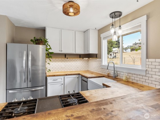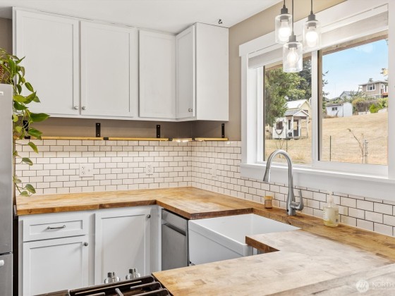 A RARE FIND!! The enclosed shop with barn doors and attached greenhouse are ready for your hobbies or homesteading dreams! Large property offers fenced gardens, a chicken coop, and mature fruit trees, with an APPROVED ANIMAL PLAN SUPPORTING POULTRY, SWINE, AND MICRO-FARMING. Inside updates include wide plank Hickory-style floors, wide craftsman trim, neutral paint, and modern fixtures. The kitchen shines with stainless appliances, butcher block counters, farmhouse sink, subway tile backsplash, and under-cabinet lighting, while the bathroom features a new vanity, tile floors, and rain showerhead. New siding, fresh exterior paint, and a new roof. Minutes to Keystone Boat Launch, Port Townsend Ferry, and Fort Casey State Park. Welcome home!