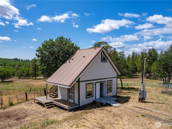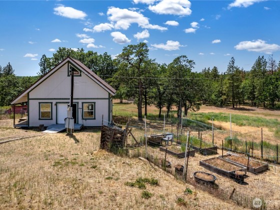 Welcome to your private retreat in the heart of Goldendale. Nestled on 5.18 peaceful, full-fenced acres, this charming 3-bed, 2-bath home blends comfort and function. Inside, enjoy brand new wall to wall carpet flooring, a cozy wood stove, and a spacious primary suite with a jetted tub and walk-in closet. Step outside to find everything you need-raised garden beds, a chicken coop, dog kennel, and multiple paddocks ready for livestock. A detached shop with a guest loft offers space for hobbies, guests, or rental income. With Starlink internet, two wells, a new cistern, and no HOA, level 2, 50 amp, 240 volt EV charging receptacle, this is the perfect mix of rural freedom and modern convenience. Peace & privacy all waiting for you.