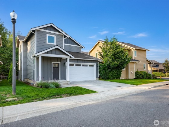 Welcome to this nearly new two-story home in peaceful Malloy Village! Enjoy open-concept main floor living with soaring ceilings and contemporary finishes. The main level primary suite offers a stylish ensuite bath and ample closet. Upstairs you’ll find two spacious bedrooms and a full bath. Relax in privacy with a greenbelt backdrop, while central heat and AC keep you comfortable year-round. Community amenities include a clubhouse, sidewalks, walking paths, and green spaces. Conveniently located just minutes to I-5 and downtown Ferndale, this home blends comfort and convenience. Welcome home!