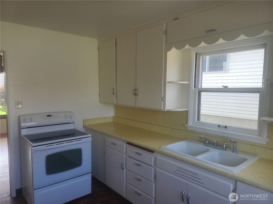 This gem, with a little polish, will be a diamond! Rock solid construction with oak hardwood floors and original wood doors and trim. These hardwood floors could stand to be refinished, but would be gorgeous when done. 2 bedrooms on the main floor and 2 bedrooms upstairs. The whole interior has just been painted including the original kitchen cabinets. Spacious fenced and level lot with a 2 car garage, but with only 1 door and shop area. Covered front porch and covered patio in the backyard. Cedar shingle siding. This estate owned property is a rare find waiting for that new buyer. Motivated Sellers! SHOW AND SELL!