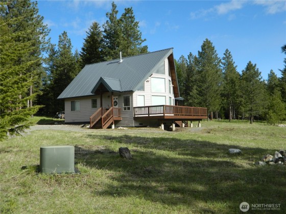 This offering is one that is seldom available! Approx 1200 sq ft Chalet sitting on a beautiful well maintained 20 acre parcel with a perfect mix of trees and meadow. Seclusion w/great maintained year around access. Large view windows, 1/2 wrap deck, loft, granite counter tops, free standing wood stove, large storage area in crawl space, meticulously built and maintained home! Close to National Forest and other public grounds as well as Bonaparte Lake Resort. Wildlife frequent the property, Deer, Elk, Moose, Turkeys often pass by. A place to be comfortable with privacy, also a great place to relax/entertain friends around an outdoor camp fire. Here is an opportunity to own a piece of the desirable Okanogan County where stoplights are scarce!